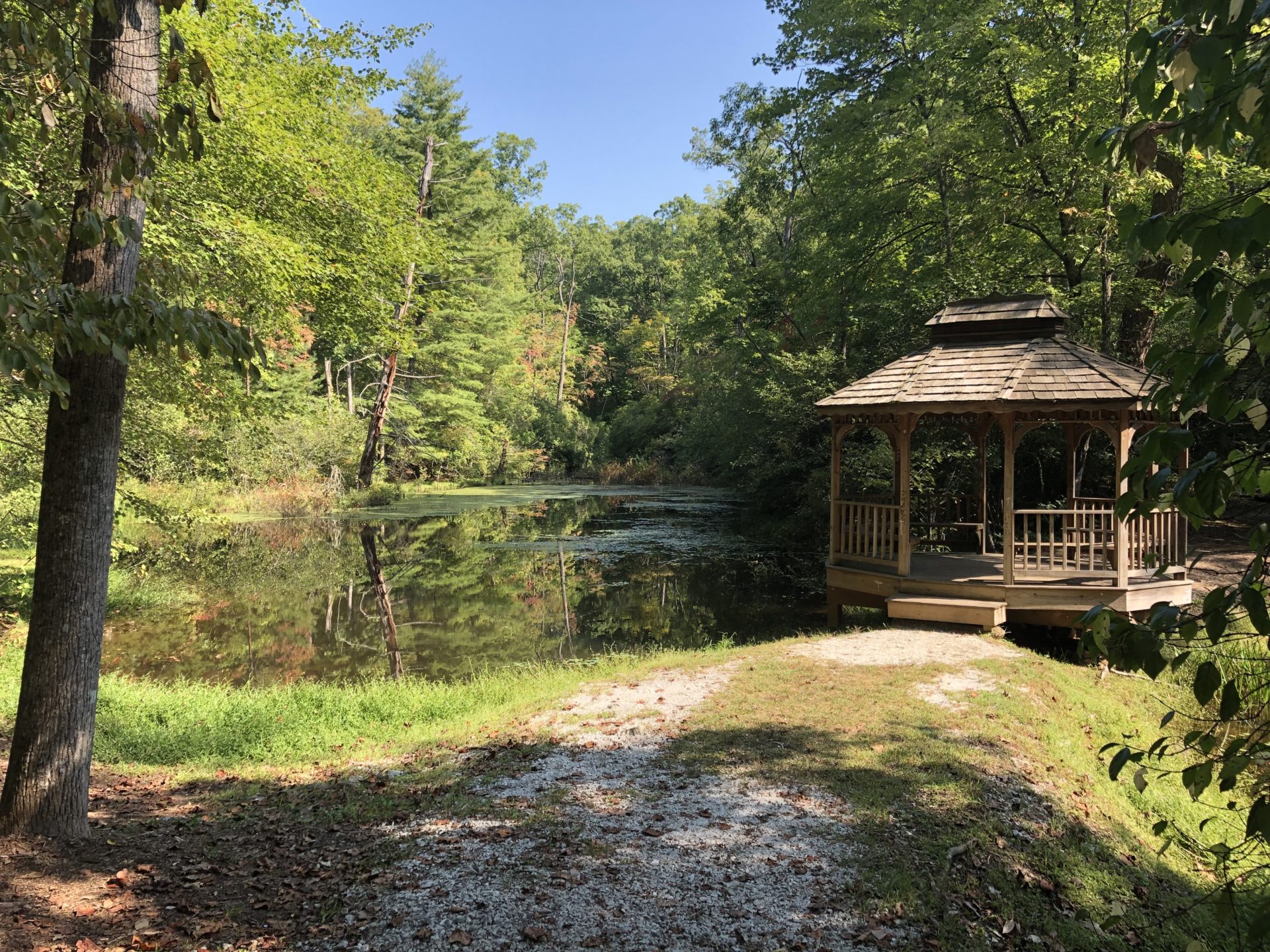 We finished at a Walhalla city park. It’s all part of Stumphouse Park, 440-acres with includes some of the areas most visited attractions: Stumphouse Tunnel and Issaqueena Falls. There was plenty of parking, picnic tables, rest rooms and even a gazebo on a pond!